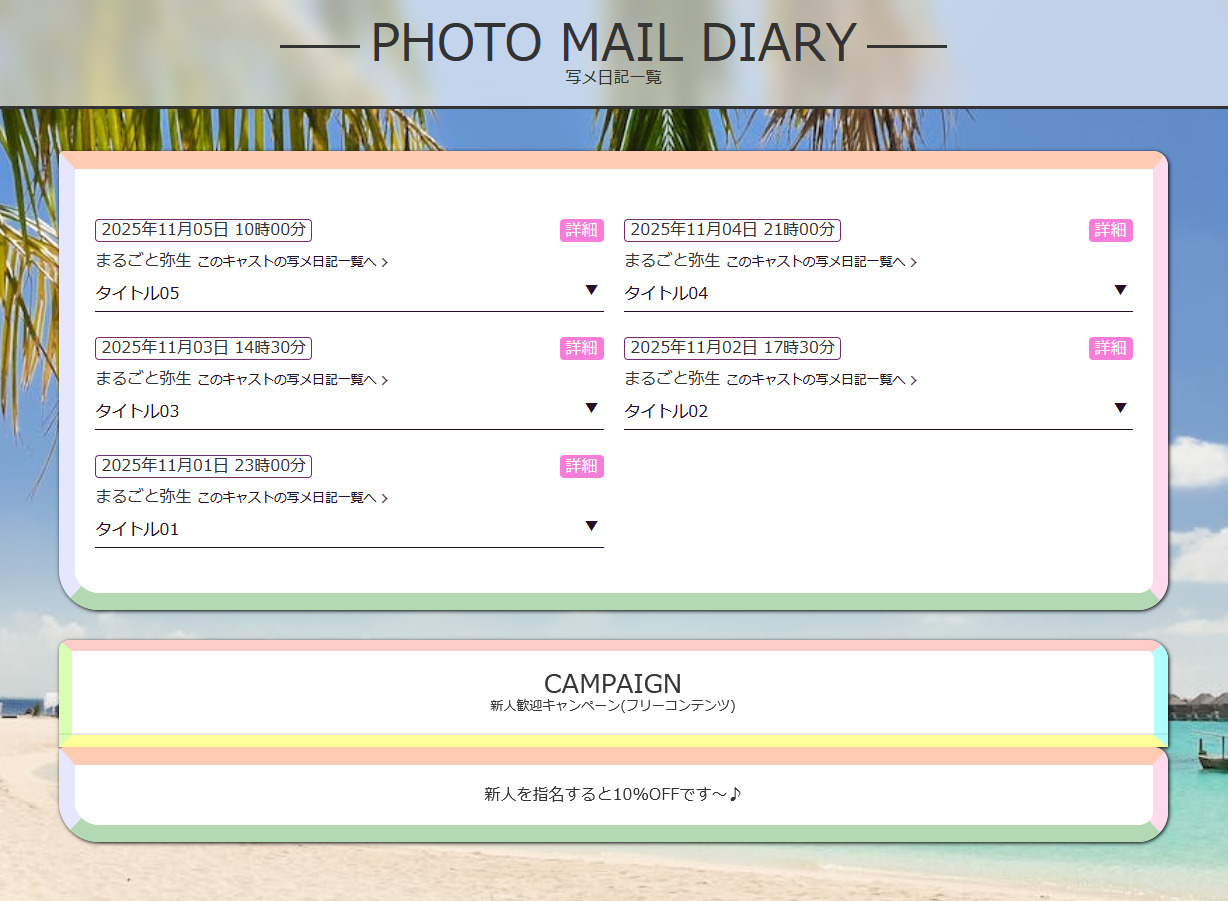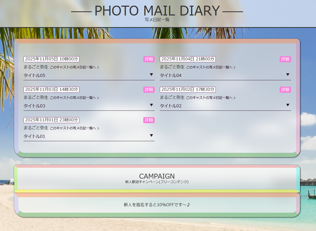 ◆写メ日記一覧ページ(下層ページ)のコンテンツ表示サンプル