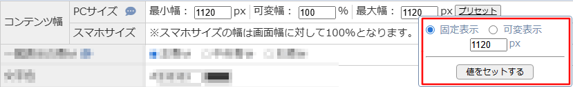 コンテンツの横幅の設定方法を、わかりやすく簡単にしてほしい。