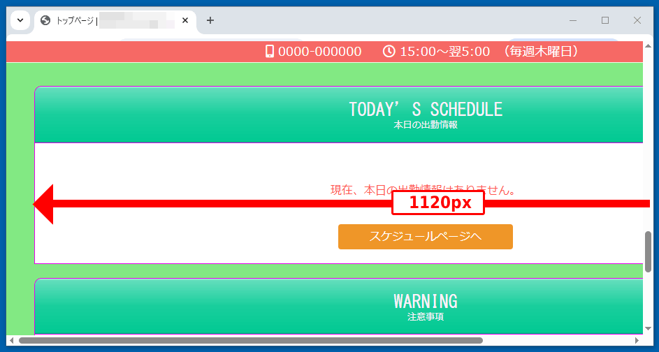ブラウザの幅が狭くても、1120pxで表示されます。