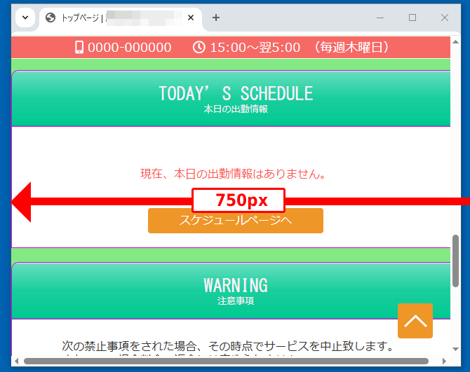 下の画像は、ブラウザ幅が狭いために横スクロールが発生した例です。