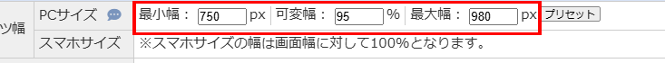 プリセット内(赤枠)の数値を変更することで、お好みの横幅を設定できます。
