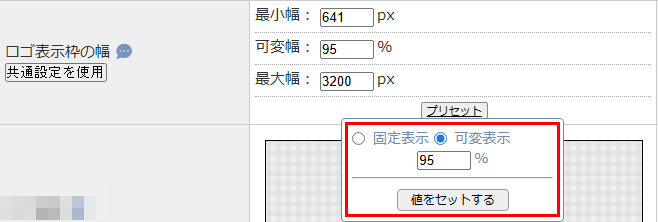 登録例3:ロゴ表示枠の幅に最小幅・最大幅を設定