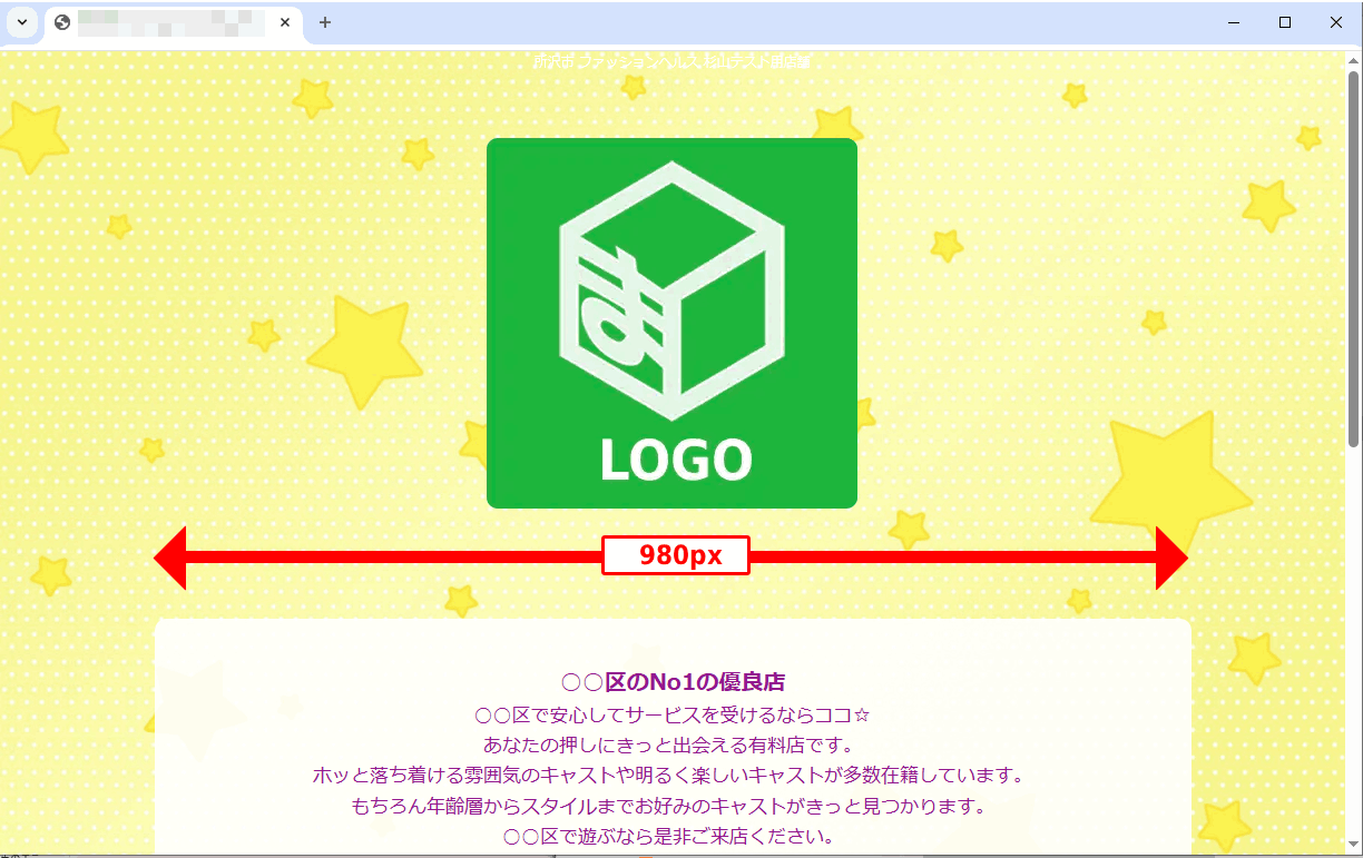 レスポンシブ版のPCサイズで表示される年齢認証ページのロゴ表示枠の幅(横幅)の設定方法が簡単になりました。