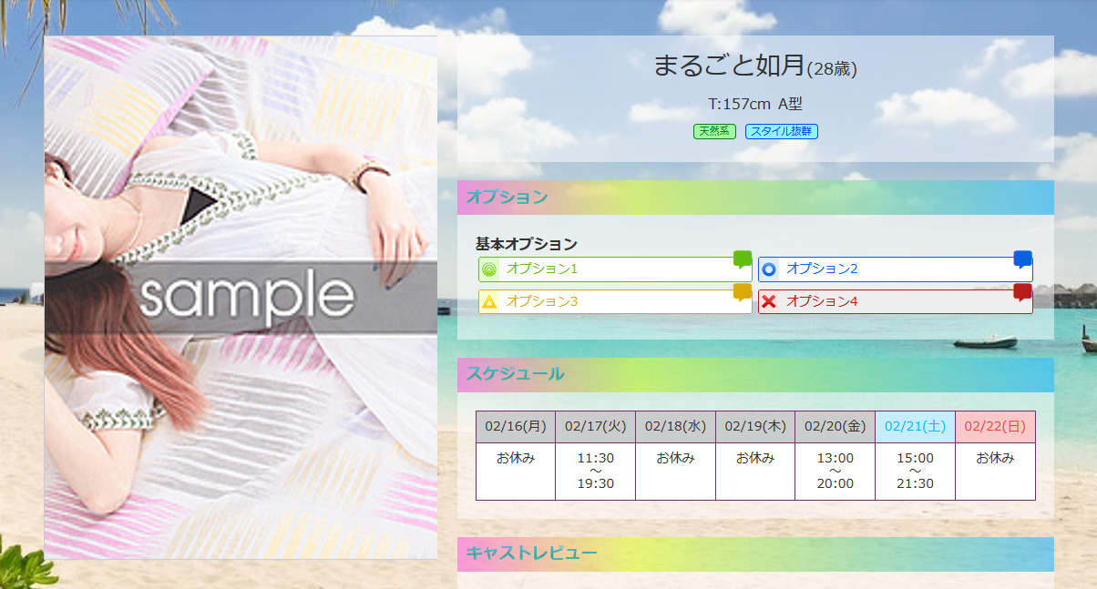 レスポンシブ版のキャスト一人分の表示枠およびキャスト詳細ページの項目タイトル枠に