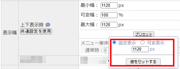登録例1:メインメニューの幅を1120pxで設定