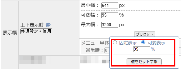 登録例2:メインメニューの幅を95%で設定