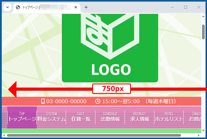 ブラウザの幅が641px~750pxのときは、750pxで表示されます。
