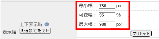 プリセット内(赤枠)の数値を変更することで、お好みの横幅を設定できます。