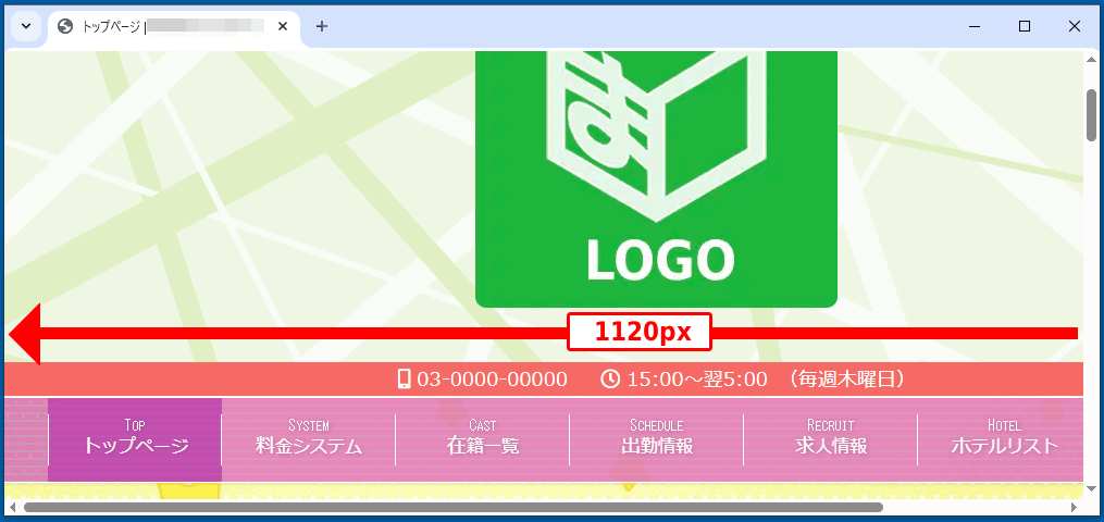 ブラウザの幅が狭くても、1120pxで表示されます。