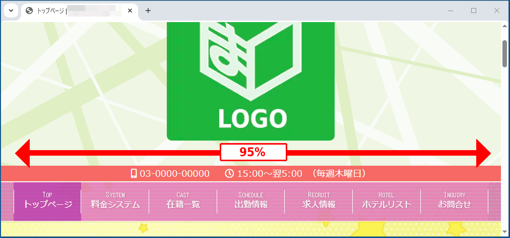 メインメニューの幅が、ブラウザの幅に対して95%で表示されます。