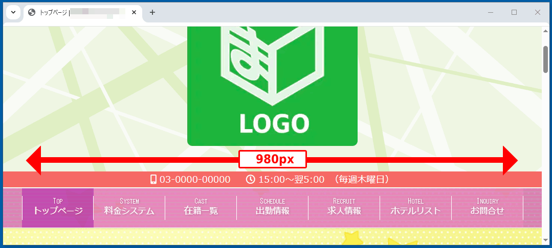 ブラウザの幅が980px以上のときは、980pxで表示されます。